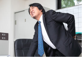 重たいものを持った際になるのはもちろんのこと、手を伸ばした際や、椅子から立ちあがるなど、ちょっとした動作で瞬間的に起こるつらい痛みで、別名「魔女の一撃」とも呼ばれています。腰の筋肉が痛みを出していることが多いですが、椎間関節や椎間板、靭帯の痛みが急に襲ってくるのが特徴です。